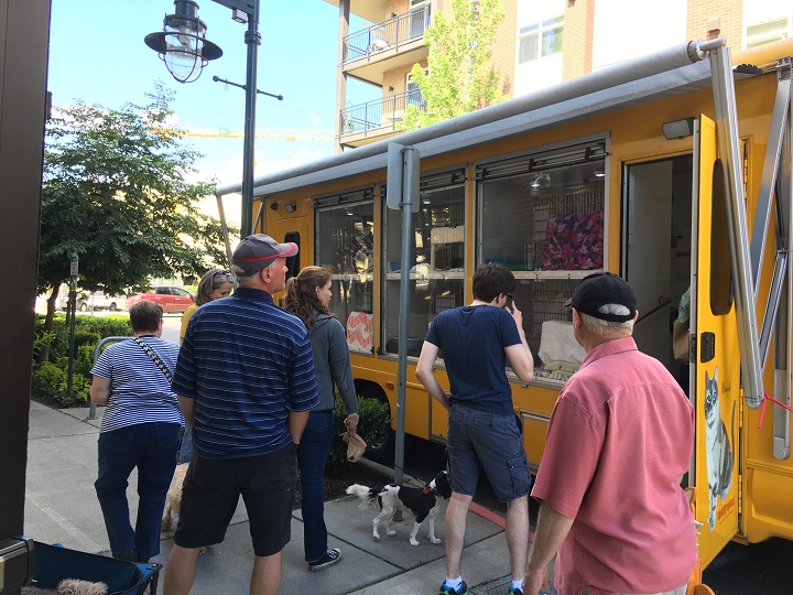 At some of the events we even had the Seattle Humane MaxMobile pull right up to the lobby! The bus was ready for on the spot adoptions as well as to answer questions and spread the word about Seattle Humane. Our residents were more than happy to peek inside and give the animals some love!
